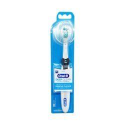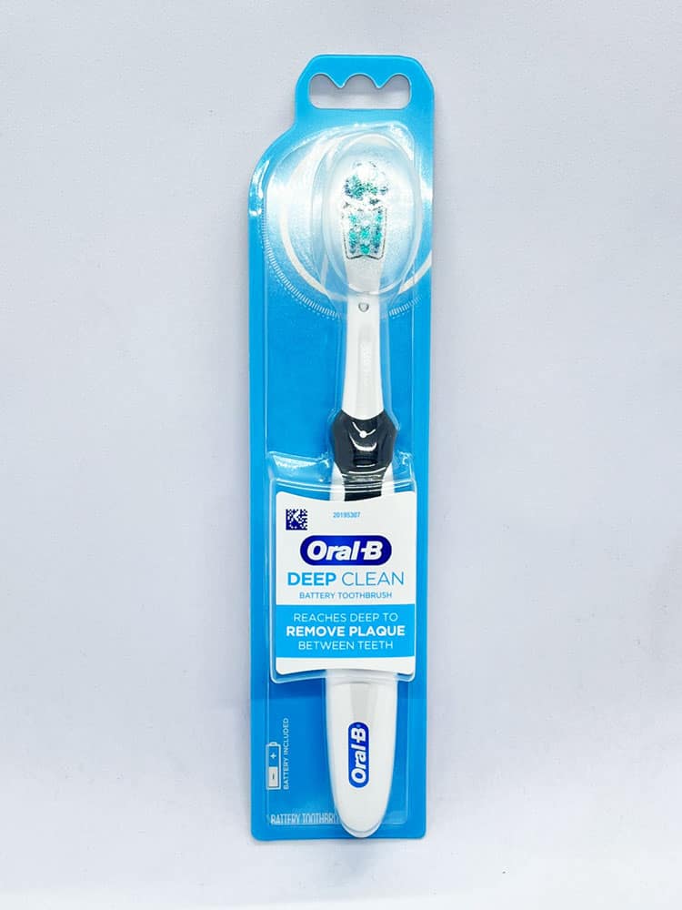 Bàn chải đánh răng chạy bằng pin AA Oral-B với đầu bàn chải có thể thay thế, vươn sâu để loại bỏ mảng bám giữa các răng.