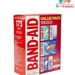 Hộp băng cá nhân Band-Aid gồm 173 miếng, nhiều loại với nhiều kích thước khác nhau:
