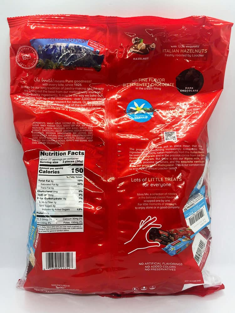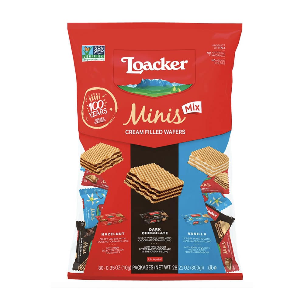 Bánh xốp nhân kem Loacker Minis (Hazelnut, Vanilla, Chocolate) 80 Pieces