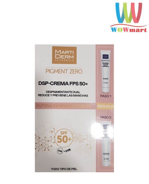 Bộ sáng da, mờ nám, chống nắng Martiderm Pigment Zero DSP-Cream SPF50 40ml + Micellar Gel 15ml + Exfoliante Scrub 15ml
