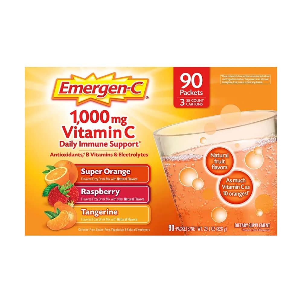 Quy cách: Hộp Emergen-C 1000mg Vitamin C 90 gói, gồm 3 hương vi tự nhiên: