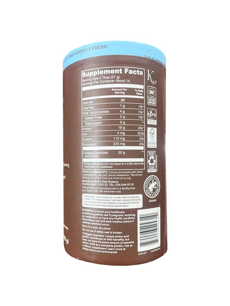 Bột collagen Vital Proteins’ Collagen Peptides dễ dàng tiêu hóa và hòa tan trong chất lỏng lạnh hoặc nóng. Bổ sung một đến hai muỗng mỗi ngày là tất cả những gì bạn cần cho sức khỏe cũng như sắc đẹp của bạn. Thêm một muỗng Collagen Peptide vào thực phẩm hoặc đồ uống để tăng cường hỗ trợ tóc, da, móng, xương, khớp khỏe mạnh, phục hồi cơ bắp…