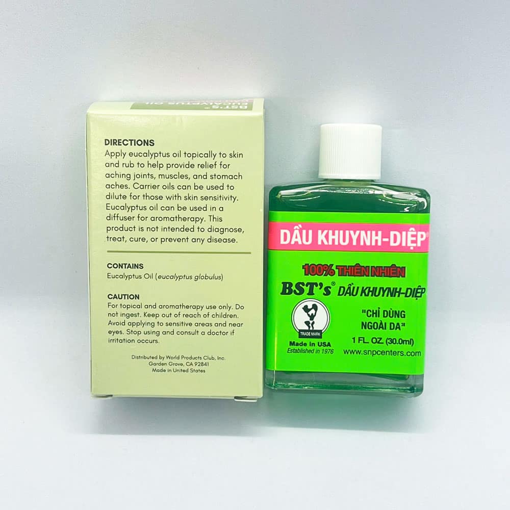 Dầu Khuynh Diệp BST từ Mỹ, là sản phẩm tự hào của người Việt trên đất Mỹ. Đây là thương hiệu do người gốc Việt đăng ký độc quyền tại Mỹ. Vì vậy mà nó vẫn được duy trì tên sản phẩm bằng Tiếng Việt.