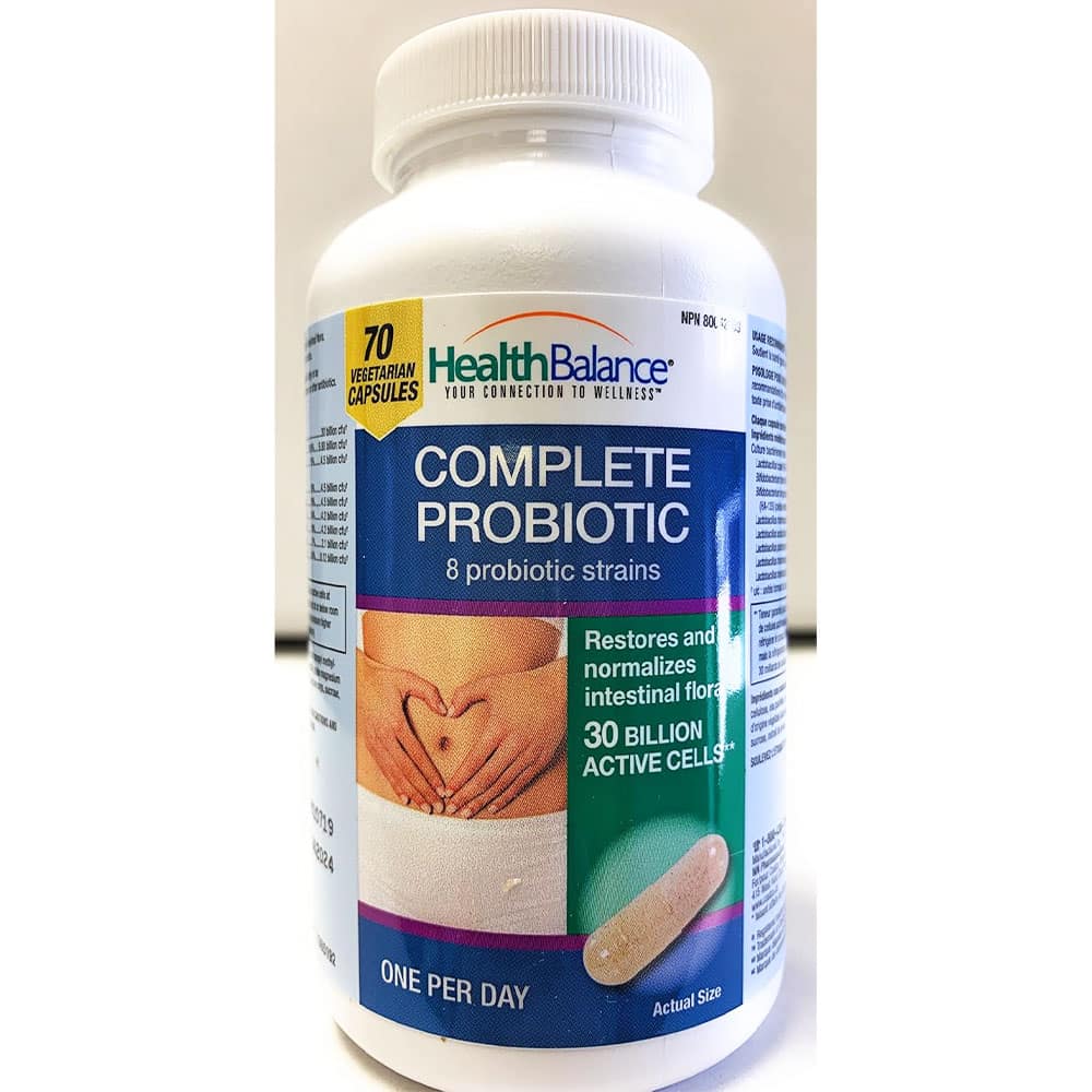 Viên uống bổ sung lợi khuẩn Health Balance Complete Probiotic cung cấp một viên mỗi ngày, chứa 30 tỷ tế bào hoạt tính, với 8 chủng lợi khuẩn giúp hỗ trợ sức khỏe đường tiêu hóa.