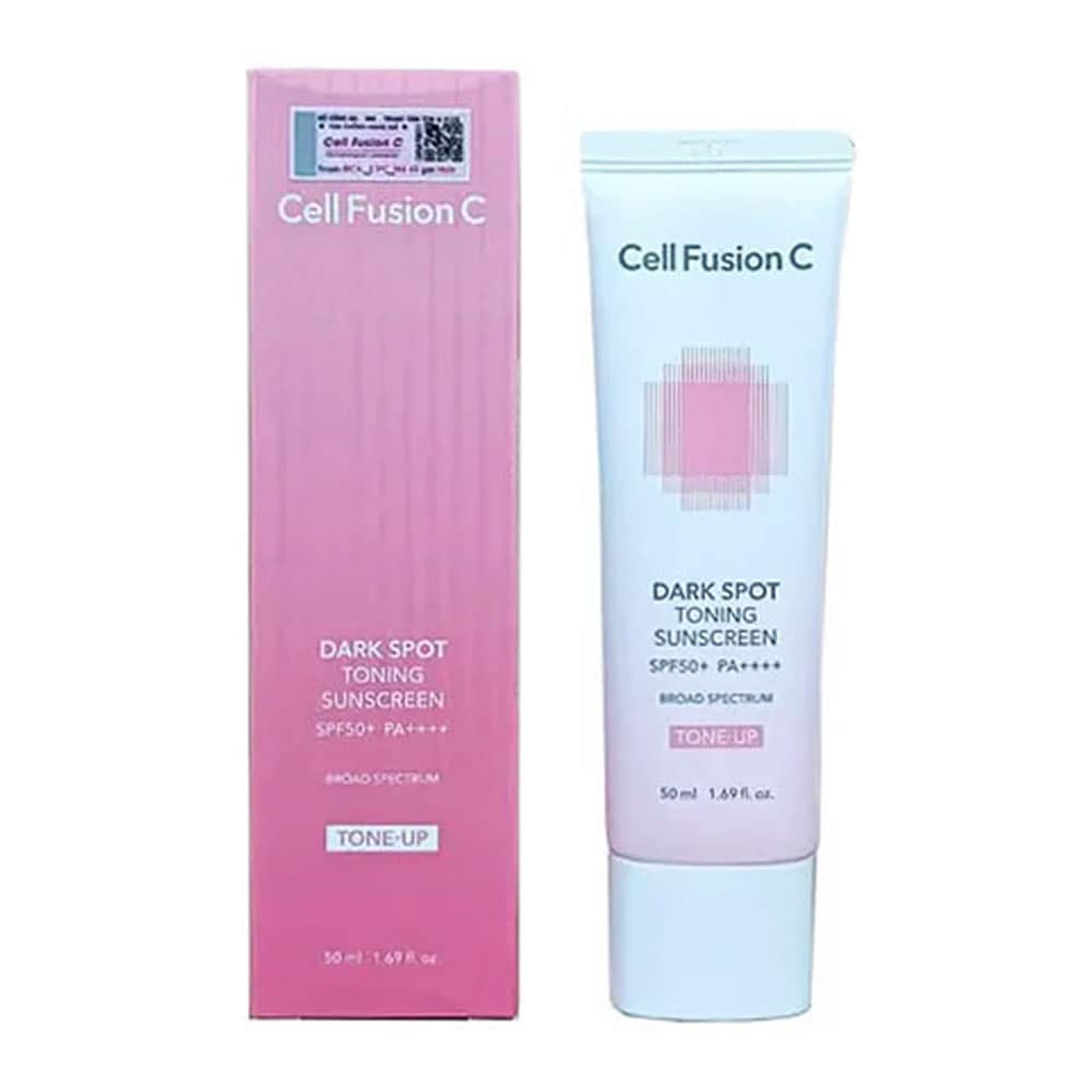 ➤ Kem chống nắng Cell Fusion C Toning Sunscreen 100 SPF50+ PA++++ (hay còn được gọi là: Cell Fusion C Dark Spot Toning Sunscreen SPF 50+ PA++++) hiện nay đã được phổ biến trên thị trường Châu Á và Việt Nam với 3 dòng: màu đỏ (cho da nhạy cảm), màu xanh (cho da mụn) và mẫu màu hồng (nâng tone da).