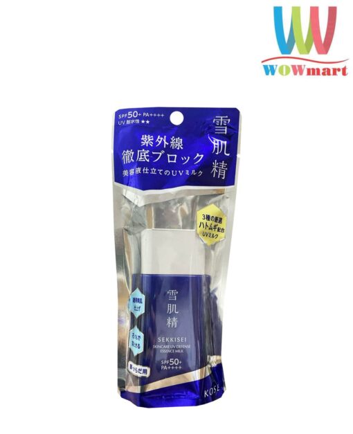 Kem chống nắng Kose Sekkisei Skincare UV Defense Essence Milk SPF 50+ PA++++ với chiết xuất từ hạt Coix và các chất chống oxy hóa cao giúp dưỡng ẩm cho da và chống lão hóa. Với chỉ số SPF lý tưởng, sản phẩm bảo vệ da gần như hoàn hảo trước ánh nắng, ngăn chặn cháy sạm, nám da, ung thư da. Kem chống nắng Kose dạng milk lỏng nhẹ thấm nhanh, không gây bết dính khó chịu.