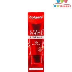Kem đánh răng Colgate Optic White Renewal với công nghệ làm trắng cực kỳ tuyệt vời chứa hydrogen peroxide giúp giảm đi mảng bám, loại bỏ đến 80% vết bẩn ở trên bề mặt răng mà không làm tổn hại đến men răng. Hiệu quả chỉ trong 1 tuần sử dụng. Trong đó Flour ngăn ngừa sâu răng hữu hiệu. Hương bạc hà cho bạn hơi thở thơm mát từng ngày.
