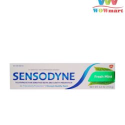 Kem đánh răng Sensodyne Fresh Mint giúp giảm và bảo vệ răng nhạy cảm lâu dài, với hương bạc hà giúp miệng bạn luôn thơm mát và sạch sẽ. Kem đánh răng này có chứa kali nitrat và natri florua bảo vệ các khu vực tiếp xúc của vôi răng và hoạt động sâu bên trong răng để làm dịu các dây thần kinh, để bảo vệ độ ê buốt lâu dài.