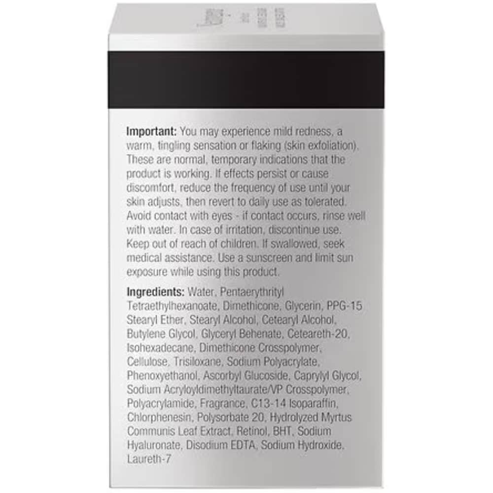 Water, Pentaerythrityl Tetraethylhexanoate, Dimethicone, Glycerin, PPG-15 Stearyl Ether, Cetearyl Alcohol, Stearyl Alcohol, Butylene Glycol, Glyceryl Behenate, Ceteareth-20, Isohexadecane, Dimethicone Crosspolymer, Trisiloxane, Synthetic Wax, Sodium Polyacrylate, Phenoxyethanol, Ascorbyl Glucoside, Caprylyl Glycol, Sodium Acryloyldimethyltaurate/VP Crosspolymer, Polyacrylamide, Fragrance, C13-14 Isoparaffin, Chlorphenesin, Polysorbate 20, Hydrolyzed Myrtus Communis Leaf Extract, Retinol, BHT, PTFE, Sodium Hyaluronate, Disodium EDTA, Sodium Hydroxide, Laureth-7.