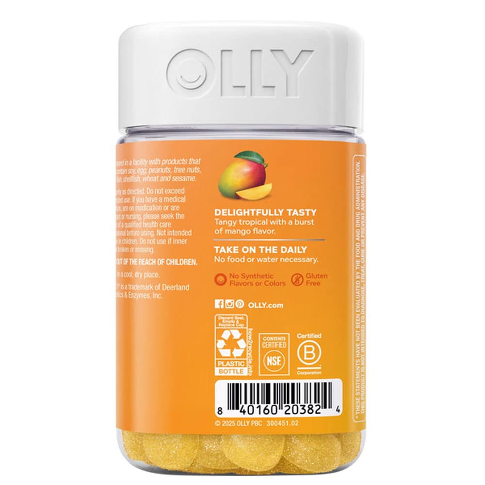 Olly Probiotic Mango mang đến 1 tỷ lợi khuẩn, mạnh mẽ có thể sống sót qua chuyến đi qua dạ dày của bạn và an toàn đến đường tiêu hóa của bạn, nơi mà chúng có thể hoạt động để giúp vi khuẩn khỏe mạnh của bạn phát triển.