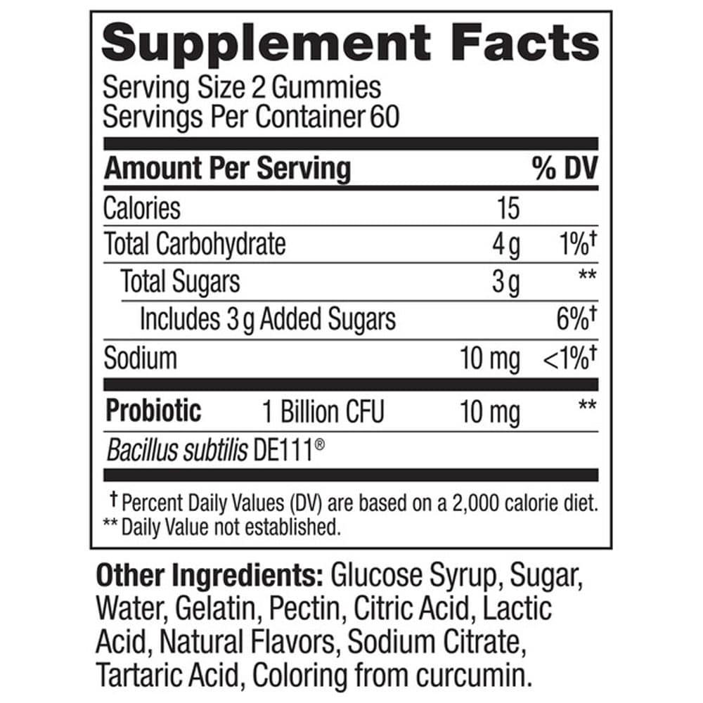 ✓ Cung cấp 1 tỷ lợi khuẩn sống Bacillus Subitilis trong mỗi khẩu phần 2 viên kẹo dẻo.