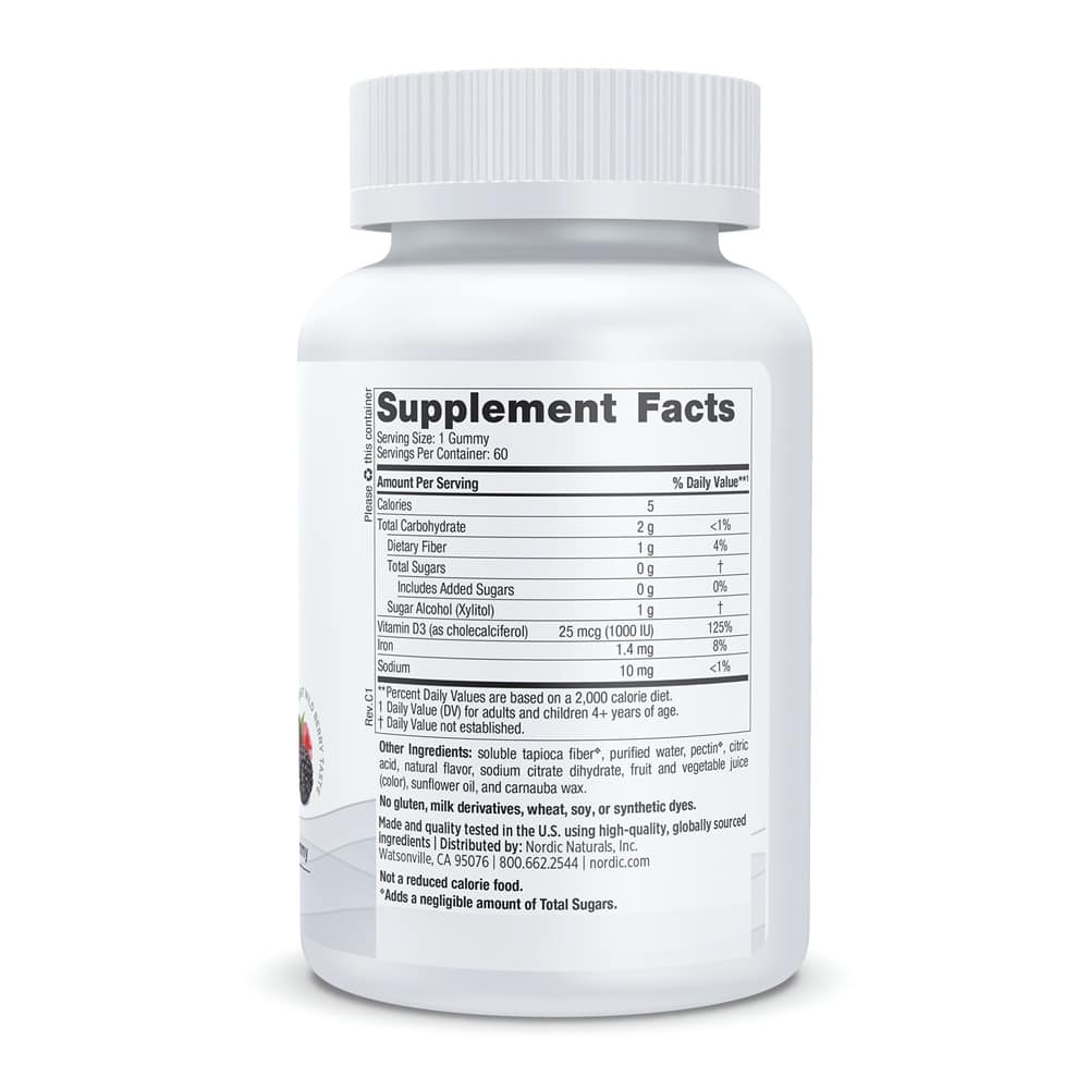Kẹo dẻo D3 Nordic Naturals Vitamin D3 1000IU Zero Sugar 60 Gummies vị Wild Berry.