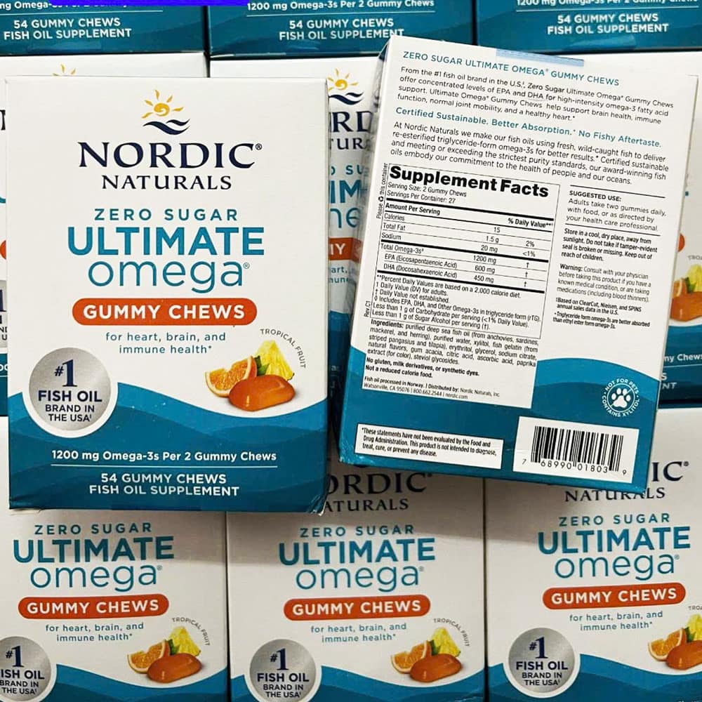 Kẹo dẻo dầu cá Omega-3 Nordic Naturals Ultimate Omega 1200mg Zero Sugar 54 Gummy Chews vị Tropical Fruit