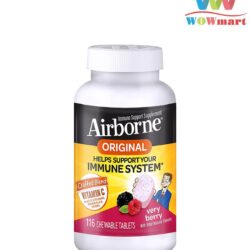 Airborne® Immune Support Supplement Chewables hỗ trợ miễn dịch cho cơ thể. Kẹo Airborne Original tăng cường Vitamin C và 13 loại vitamin, khoáng chất, và thảo mộc khác. Các loại thảo mộc bao gồm echinacea, gừng và các chất chiết xuất thảo dược từ thực vật.