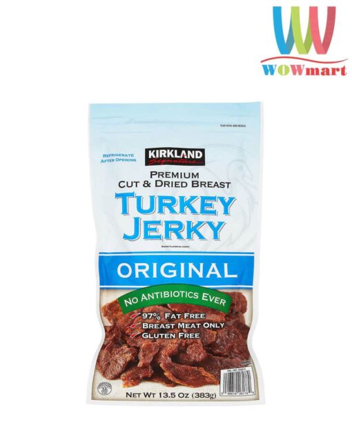 ✓ Khô gà Tây Kirkland Signature Turkey Jerky được làm từ thịt ức gà tây cắt miếng và sấy khô cao cấp.