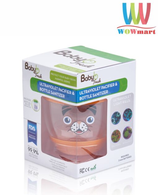 Máy khử trùng núm ti bằng tia cực tím Baby B Fresh Tiger bình màu cam có hình hổ con (cọp con) dễ thương.