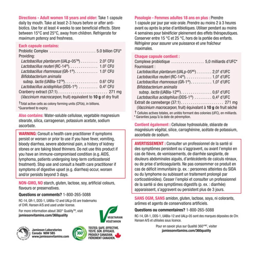 Jamieson Women’s Cranberry Advanced Probiotic là thực phẩm bổ sung dành cho nữ, kết hợp Cranberry và Probiotic trong công thức dùng 1 viên mỗi ngày.