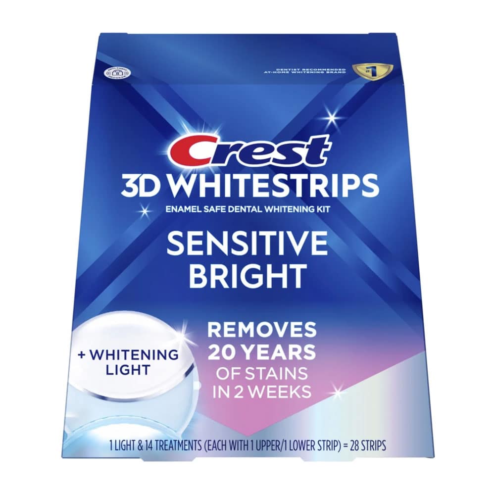 Miếng dán kèm máy chiếu làm trắng răng Crest 3D Whitestrips Sensitive Bright 28 miếng + 1 LED Light