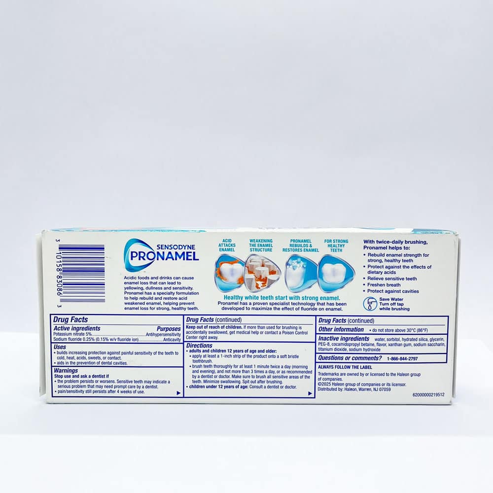 Kem đánh răng Sensodyne Pronamel Fresh Breath sẽ giúp loại bỏ vết bẩn trên bề mặt răng, tăng cường sức mạnh cho men răng. Công thức đăc biệt dành riêng cho răng nhạy cảm, giúp ngăn ngừa các mảng bám trên răng. Kem đánh răng SENSODYNE Fresh Breath sẽ góp phần bảo vệ sức khỏe răng miệng của gia đình bạn, cho bạn hơi thở thơm mát.