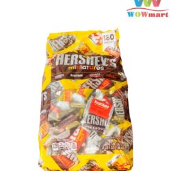 Socola Hershey’s Miniatures Chocolate 56oz 1.58kg (180 Pieces) được làm từ những nguyên liệu tự nhiên được chọn lọc kĩ lưỡng mang đến chất lượng và mùi vị tuyệt hảo cho từng viên kẹo.