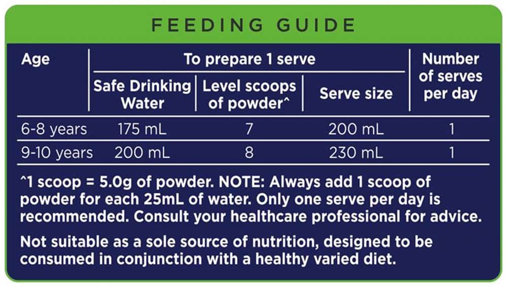 + Sữa được thiết kế đặc biệt cho từng độ tuổi khác nhau từ 1 đến 10.