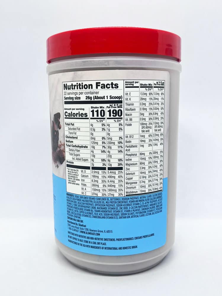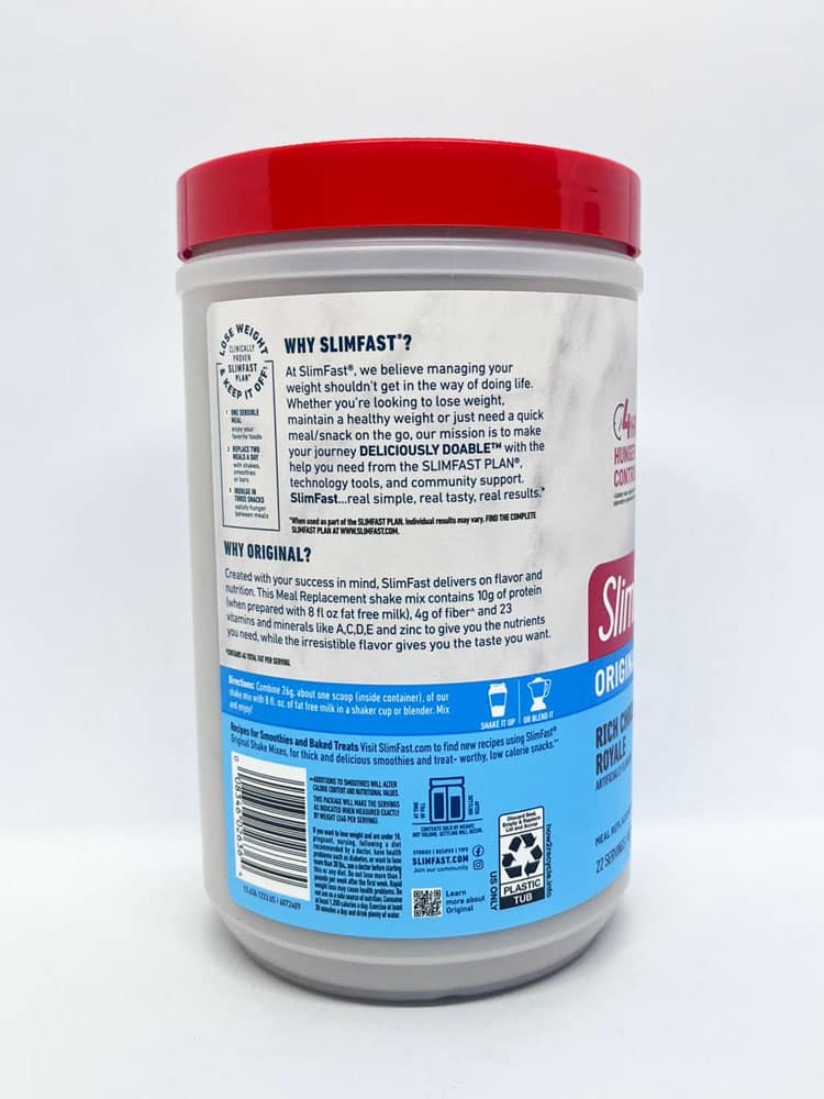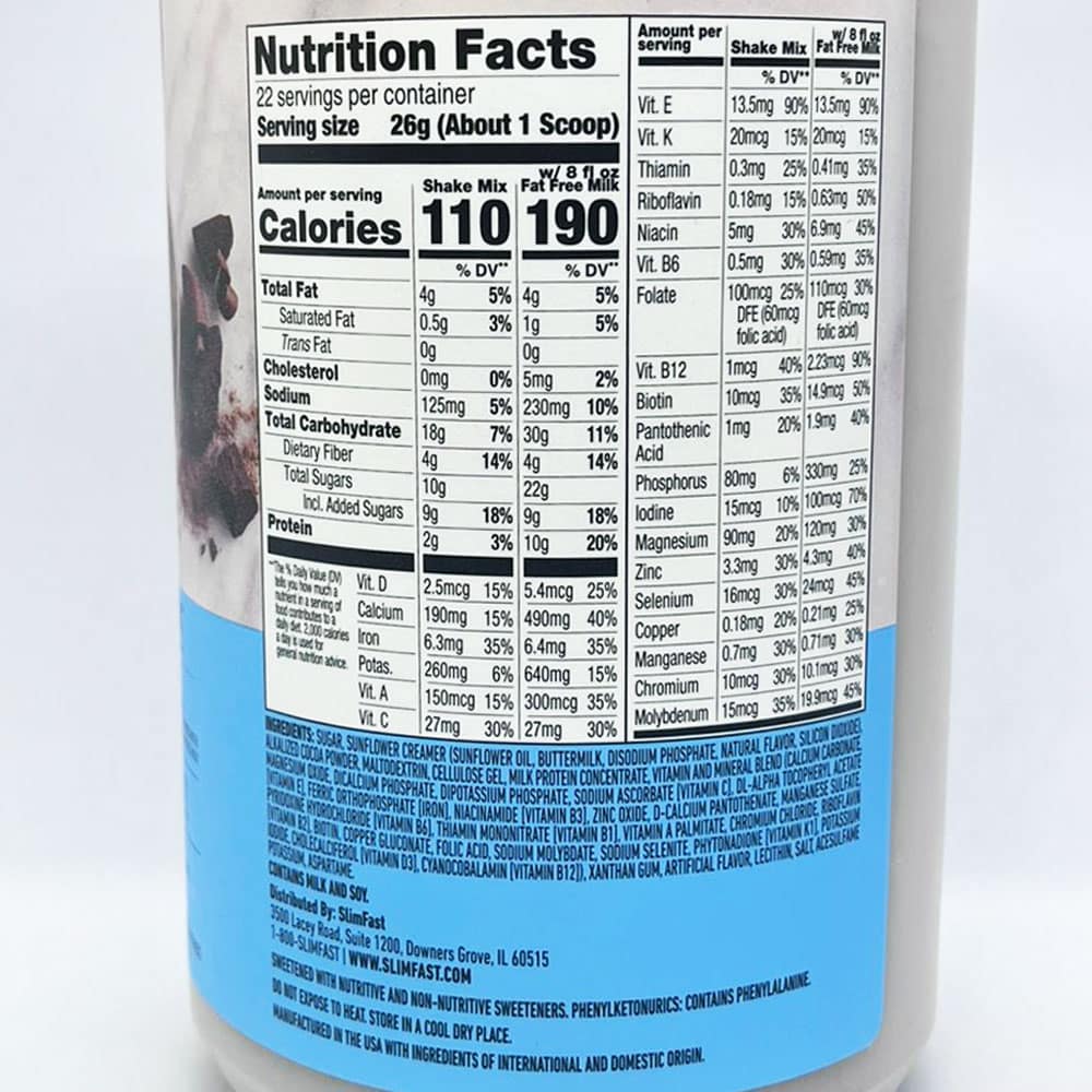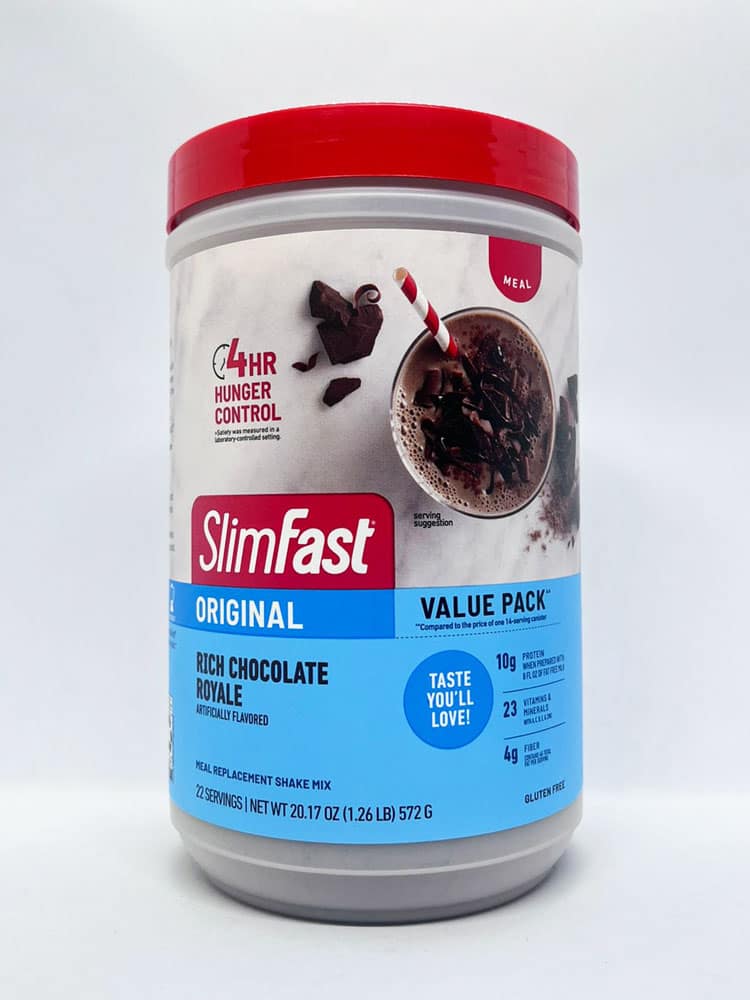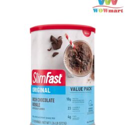 Đóng gói với protein, vitamin, và khoáng sản: Hỗn hợp thay thế bữa ăn đầy đủ dưỡng chất này bằng sữa SlimFast. Sữa bột giảm cân Slimfast Original vị socola Slimfast Original Rich Chocolate Royale chứa 10 gram protein cùng với 5 gram chất xơ và 23 vitamin và khoáng chất thiết yếu giúp cơ thể bạn xử lý và đốt cháy chất béo đã tích tụ, giúp bạn dễ dàng giảm cân hơn.