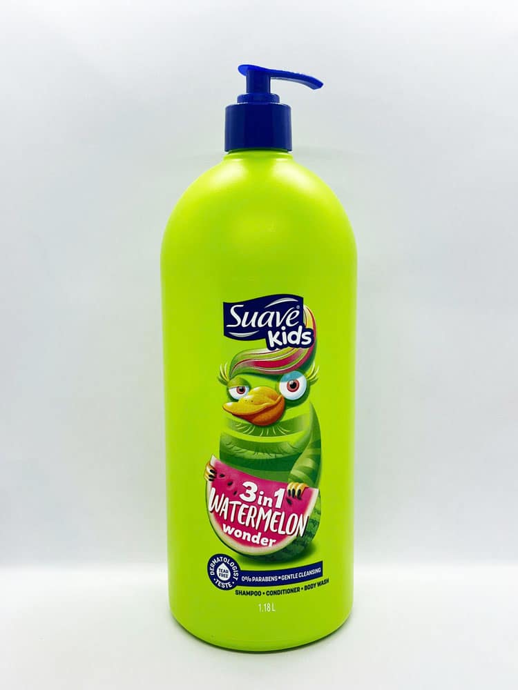 – Các bà mẹ luôn đắn đo suy nghĩ khi lựa chọn dầu gội, sữa tắm cho bé yêu của mình. Làn da nhạy cảm của bé đòi hỏi các bà mẹ phải lựa chọn sản phẩm an toàn và hợp vệ sinh. Sữa tắm gội Suave Kids 3 in 1 với hương Watermelon Wonder sẽ giúp cho làn da của trẻ luôn thơm tho, sạch sẽ và khỏe mạnh, vui chơi thỏa thích. Sữa tắm gội và xả trẻ em Suave Kids Watermelon Wonder là một sản phẩm của hãng Suave, một thương hiệu nổi tiếng hơn 70 năm qua tại Mỹ.