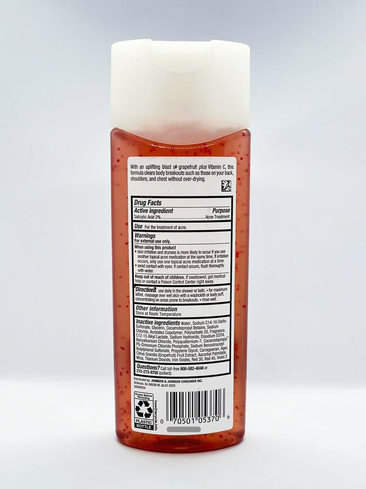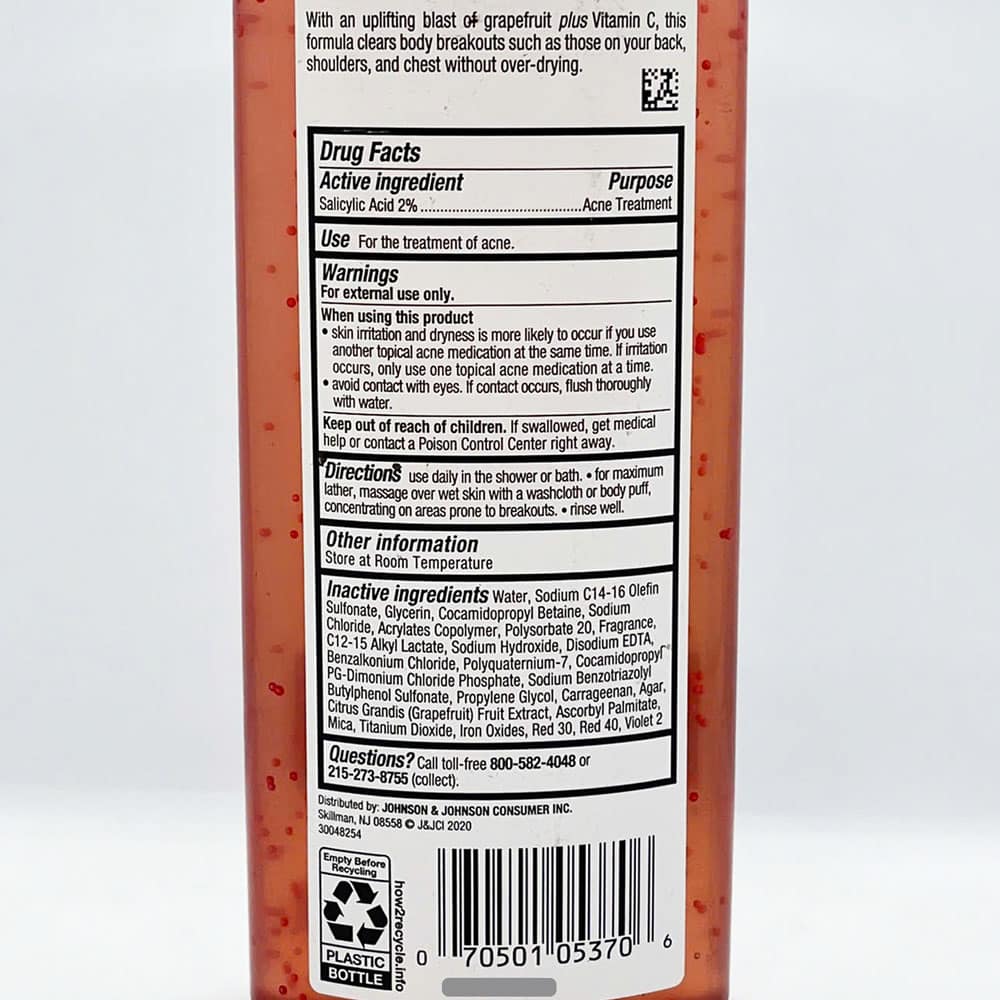 Thành phần sữa tắm ngăn mụn lưng Neutrogena Body Clear Body Wash Pink Grapefruit