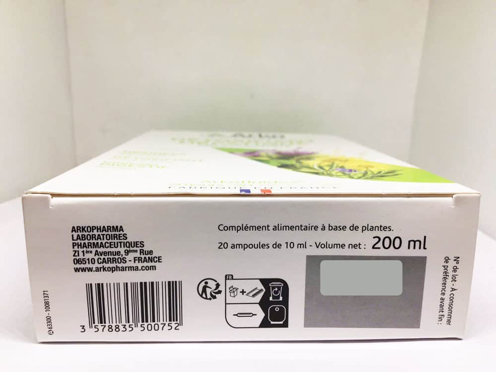 Thành phần thảo mộc giải độc gan dạng nước Arkopharma Detoxifiant Hepatique