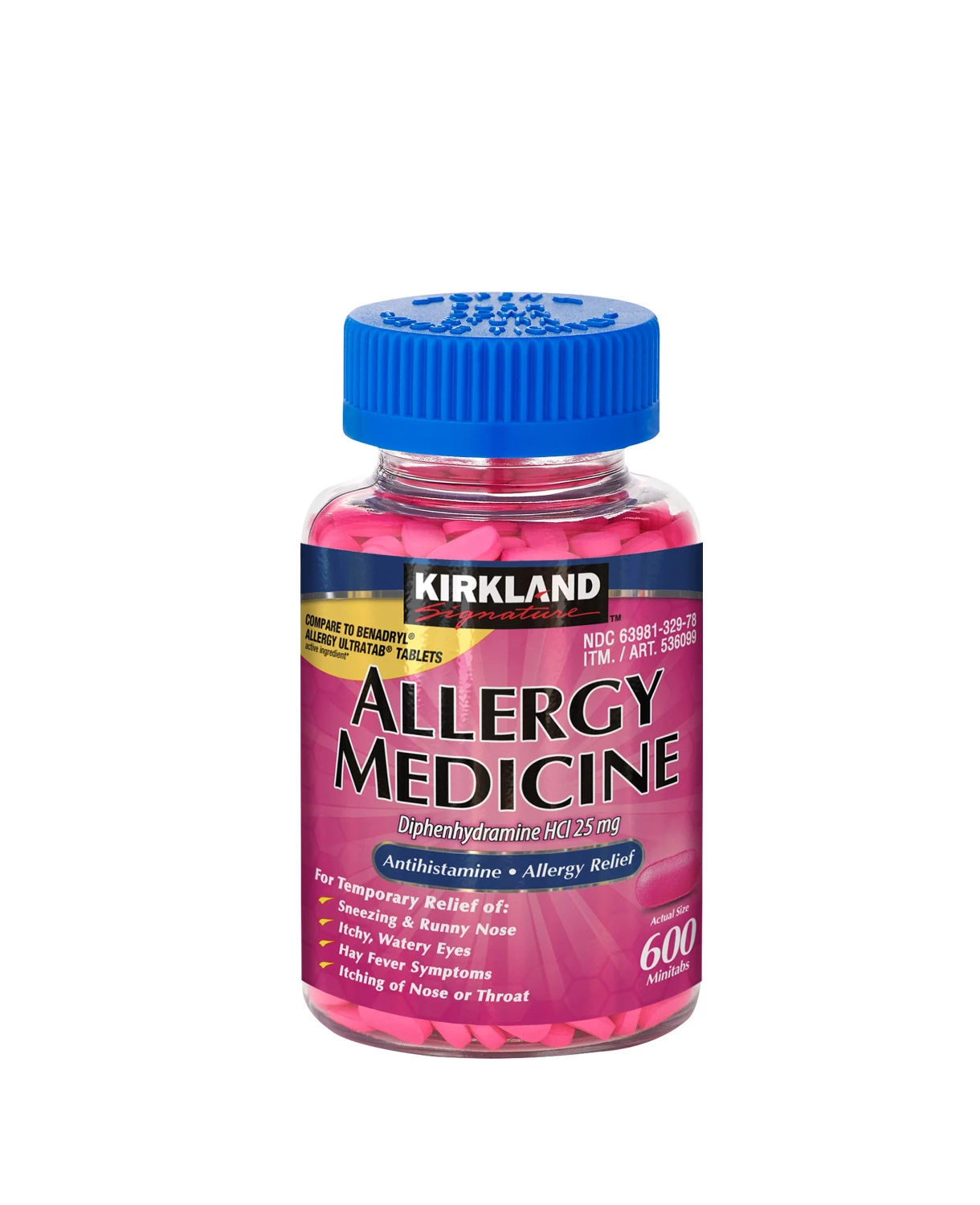 • Kirkland Signature™ Allergy Medicine là viên uống chống dị ứng và sổ mũi cho người lớn và trẻ em từ 6 tuổi trở lên. Đây là dạng viên nén nhỏ (Minitabs) nên rất dễ nuốt và dễ uống.