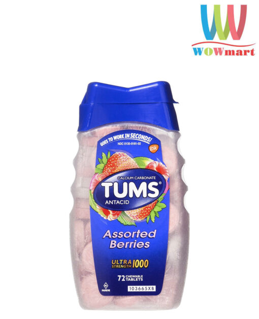 Viên ngậm giảm đày hơi khó tiêu Tums Antacid Assorted Berries 72 viên