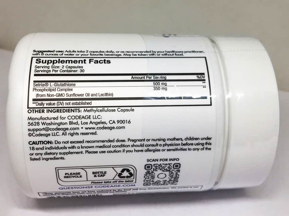 Thành phần viên uống bổ sung Setria L-Glutathione CodeAge Liposomal Glutathione 500mg Antioxidant: