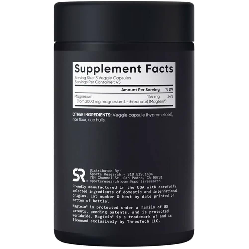 Viên uống bổ sung Magie Sports Research Magtein Magnesium L-Threonate 2000mg (Mag LT™ hay Magnesium L-threonate) được làm bằng Magtein®, một hợp chất được cấp bằng sáng chế do các nhà nghiên cứu tại MIT phát triển. Đây là dạng magiê độc đáo có hiệu quả vượt qua hàng rào máu não và làm tăng mức magiê trong não, rất quan trọng để cải thiện chức năng nhận thức.