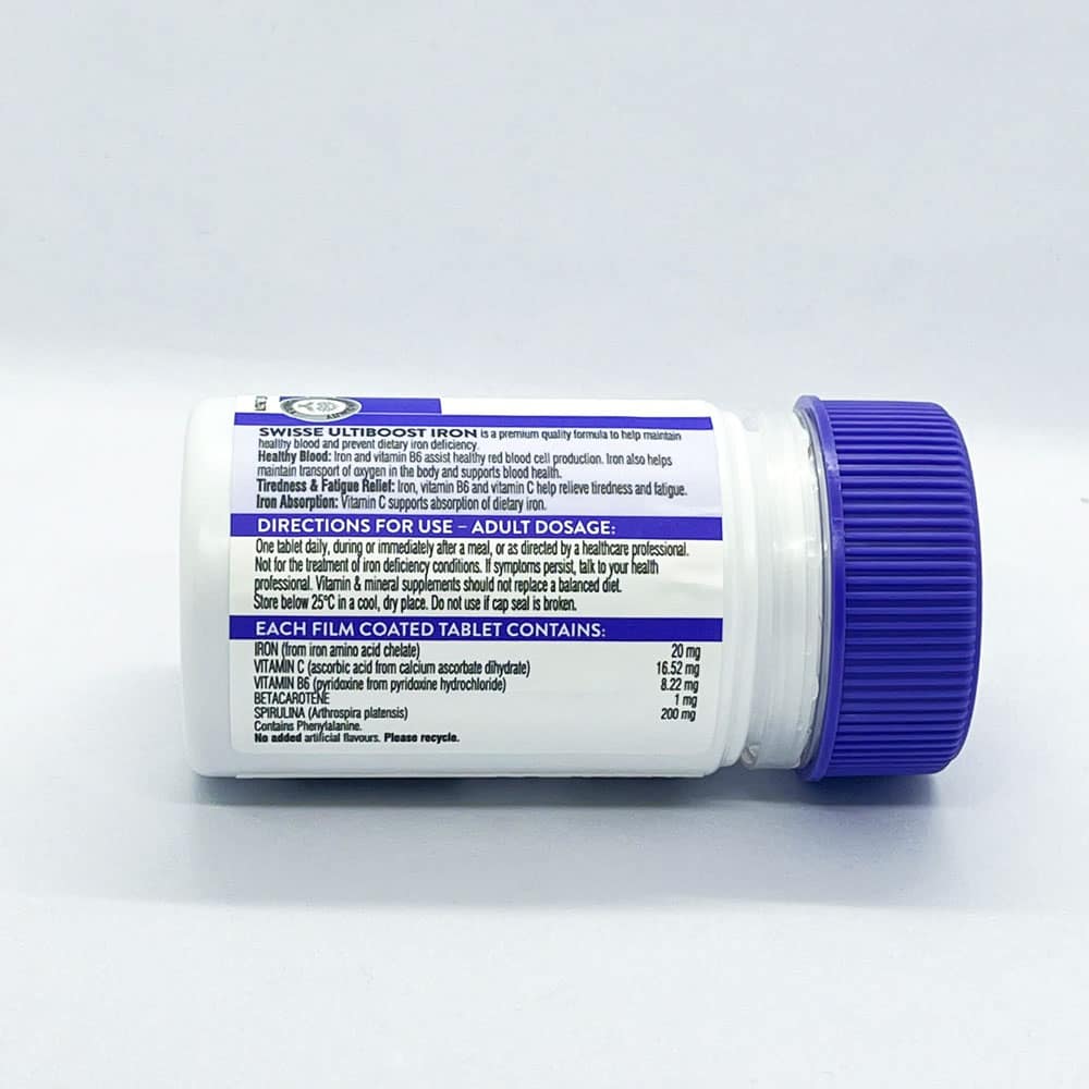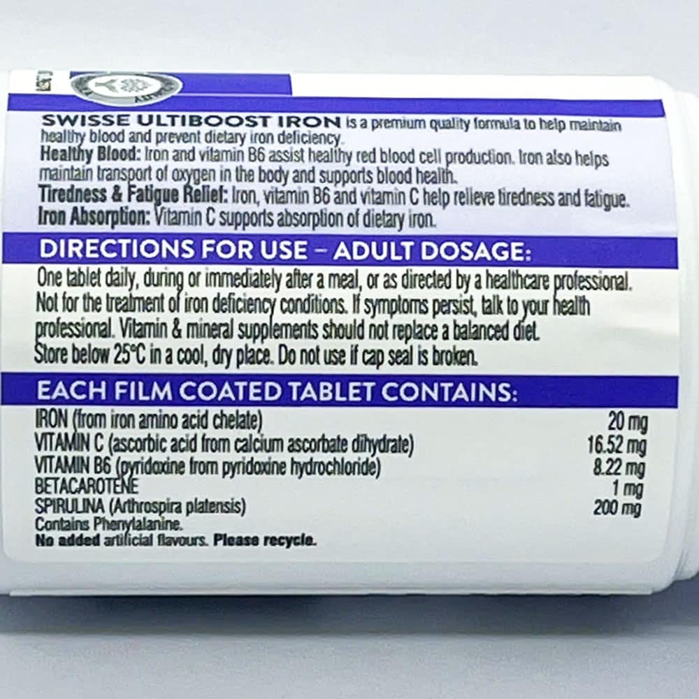 Viên bổ sắt Swisse Ultiboost Iron with vitamin C sử dụng một phức hợp hữu cơ của sắt để hỗ trợ trong việc quản lý chế độ ăn uống thiếu chất sắt và hỗ trợ trong quá trình mang thai khi cơ thể đòi hỏi mức độ gia tăng của sắt, hay sức khoẻ phụ nữ chủ yếu nói chung. Viên uống sắt Swisse Ultiboost Iron chứa nhiều vitamin C vừa để hỗ trợ sự hấp thu sắt và hạn chế việc bị táo bón khi sử dụng sắt.
