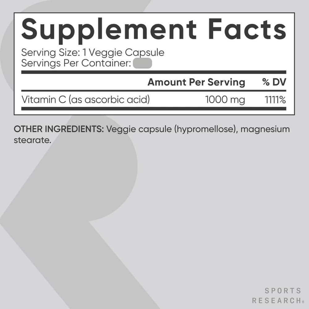 Vitamin C Sports Research dạng viên uống này cung cấp cho bạn sự hỗ trợ nâng cao, thúc đẩy hoạt động chống oxy hóa và giúp hỗ trợ chức năng hệ thống miễn dịch. Nuôi dưỡng bản thân bằng các loại vitamin thiết yếu và ưu tiên thói quen chăm sóc sức khỏe hàng ngày của bạn, từ trong ra ngoài.