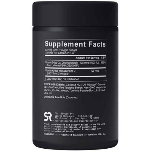 Hướng dẫn sử dụng viên uống bổ sung Vitamin D3, K2 SR Vitamin D3 + K2 with Coconut Oil 125mcg (5,000 IU)
