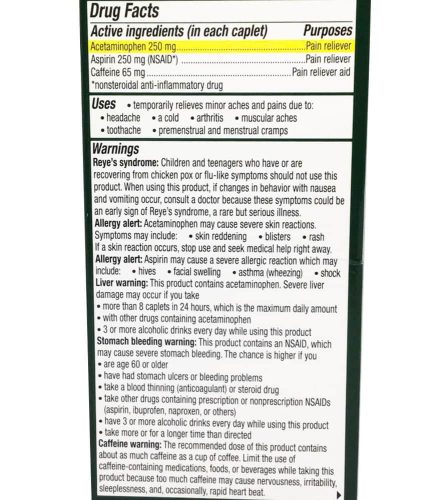 Excedrin Extra Strength là một loại giảm cơn đau kết hợp có chứa acetaminophen, aspirin và caffeine. Các bác sĩ tin rằng các sản phẩm giảm các cơn đau kết hợp này mang lại những lợi thế lớn, bao gồm cả tác dụng giảm cơn đau được nâng cao. Caffeine cũng là một thành phần trong nhiều phương pháp cải thiện đau đầu theo toa, tuy nhiên, loại giảm cơn đau đầu kết hợp, không kê đơn như Excedrin thường được khuyên dùng để thay thế.