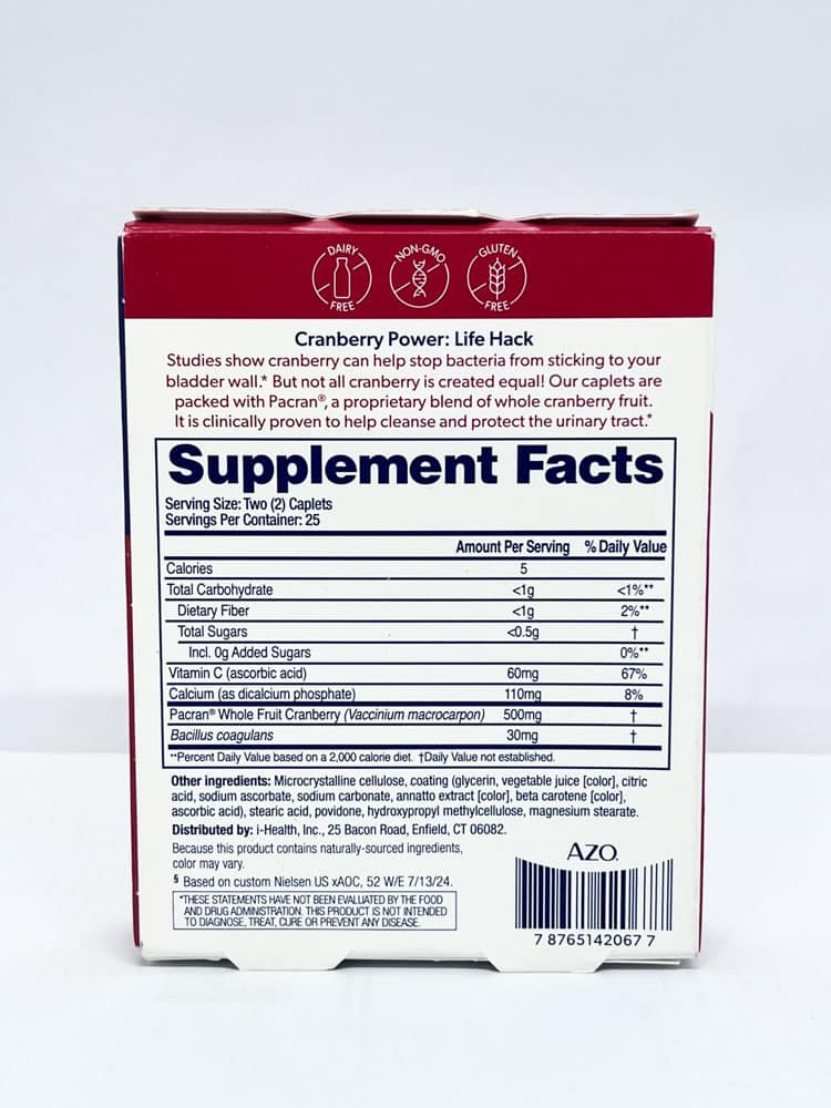 – Các sản phẩm AZO Cranberry không chứa lactose.