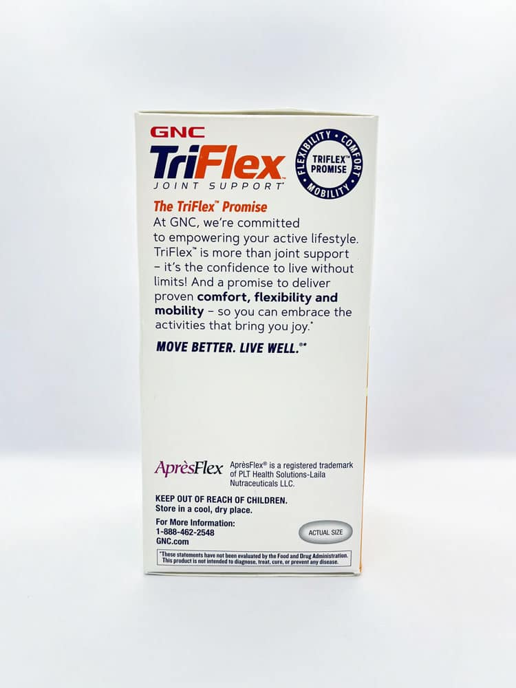 Không chỉ vậy, GNC TriFlex còn hoạt động tích cực trong việc ngăn ngừa sự thoái hóa xương khớp và giúp hồi phục các khớp xương bị thương tổn trong cơ thể. Bằng những thành phần được nghiên cứu kỹ càng về công dụng, đây là sản phẩm đáng tin cậy và thực sự cần thiết cho người mắc bệnh xương khớp.