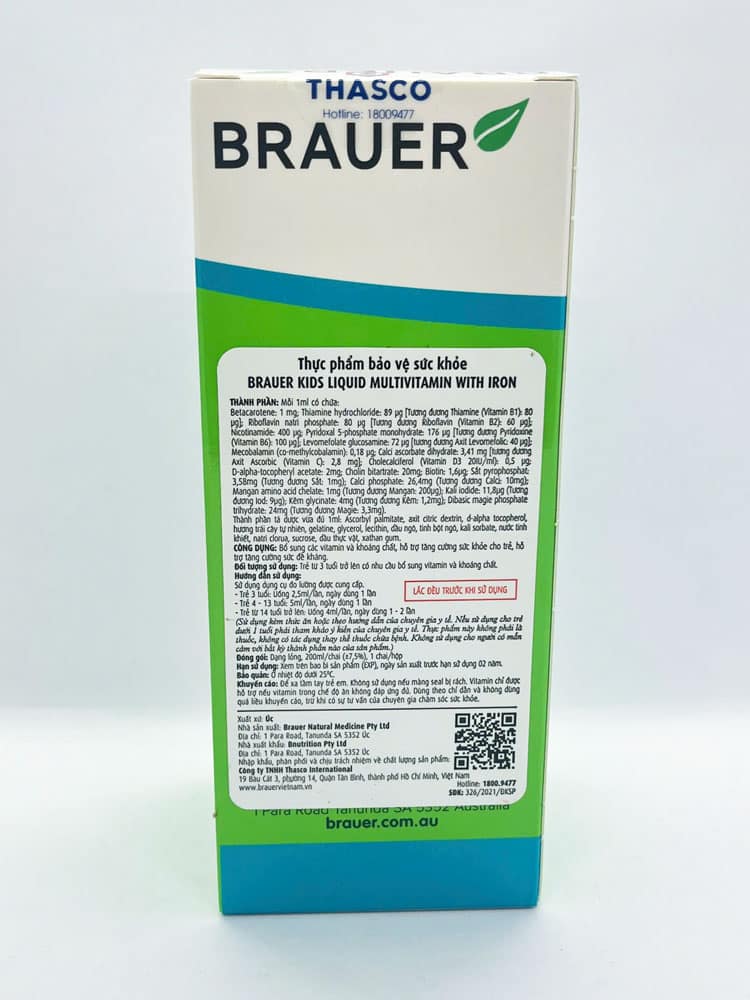 Vitamin tổng hợp cho bé 3+ Brauer Liquid Multivitamin 200ml với công thức bao gồm 18 loại Vitamin và khoáng chất cần thiết giúp hỗ trợ quá trình phát triển và trưởng thành của trẻ, tăng cường sức sống giúp cơ thể luôn khỏe mạnh. Sản phẩm có hương vị tự nhiên, được kiểm nghiệm an toàn cho trẻ nhỏ, 99% không đường nhân tạo.