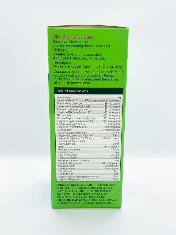 Thành phần cho bé 3+ Brauer Liquid Multivitamin: