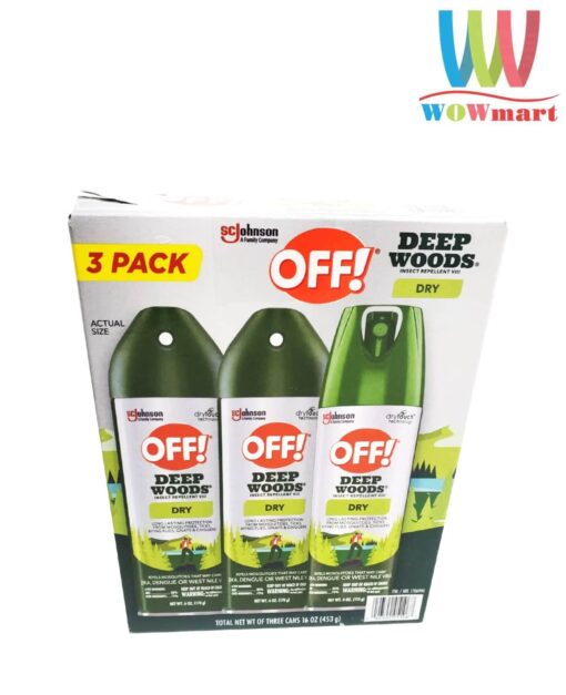 Xịt chống muỗi và côn trùng OFF! Deep Woods Dry Set 3 chai tổng cộng 453g (16 oz) Gồm: